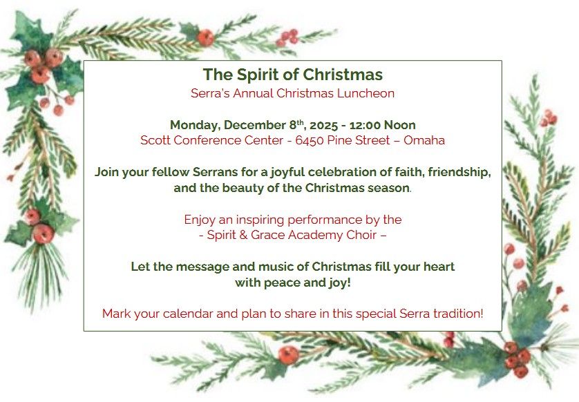 A Message from the President Dear Serrans, As we enter the holy season of Advent and prepare our hearts for the coming of Christ, I am filled with deep gratitude for each of you and for the many ways the Serra Club of Omaha has...