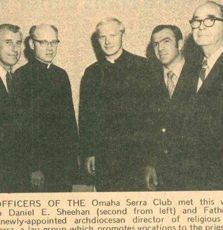 On April 13, 1951, Mr. Hotz wrote to Serra International's Executive Secretary, that the Archbishop had approved Monsignor Sheehan's appointment as Chaplain of the Serra Club of Omaha. On May 31, 1951, the International Office was advised of its officers: Edward Whelan, President; Francis McDermott, Vice-President; Dr. Murphy, 2nd Vice-President; and William Hotz, Jr., Secretary-Treasurer. By that time, the following charter members had been added: Donald Eck, Ted Kalamaji, Dr. Hugh McDonnell, Emmett Curry, Dr. Robert Fitzgibbons, Jack Leary, and Al Ternus. On August 26, 1951, the first Seminarian picnic took place. On October 4, 1951, the Charter of the Serra Club of Omaha was granted, and it was presented at a formal dinner at the Blackstone Hotel on October 27, 1951.